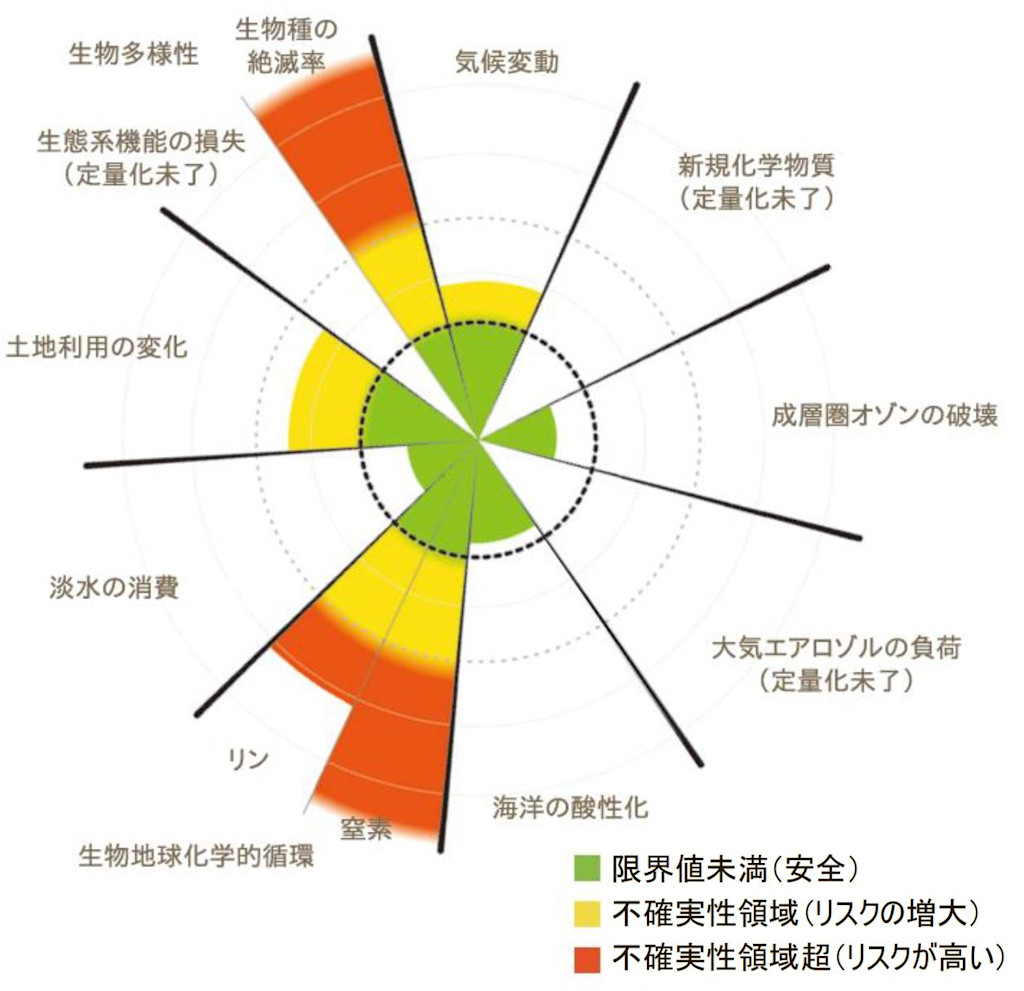 出所: 「Planetary boundaries: Guiding human development on a changing planet(プラネタリー・バウンダリー: 変わりゆく地球における人類の開発の指針)」