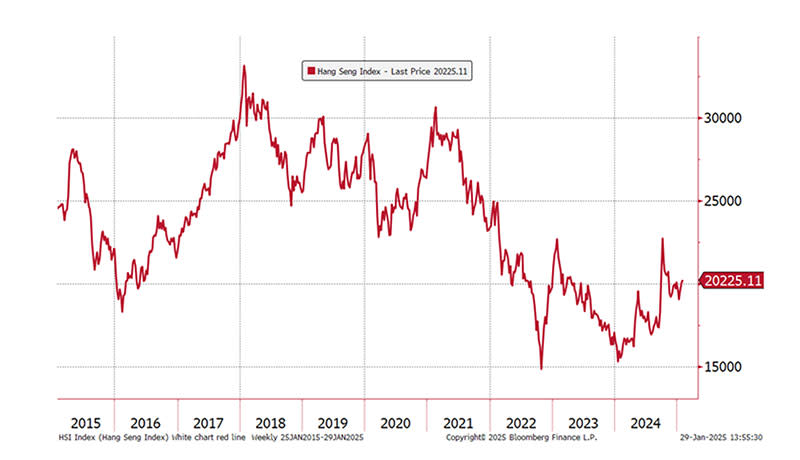 The Hang Seng Index has had a dismal decade, with a tentative bottom. Source: Bloomberg