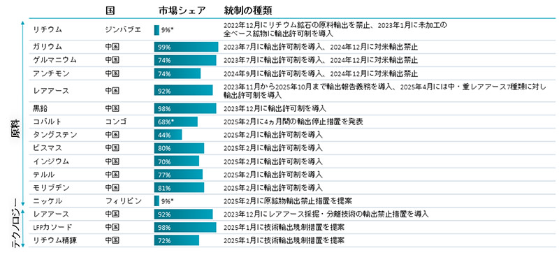 図表 4 – 中国は鉱物のサプライチェーンを戦略的に利用し混乱を継続