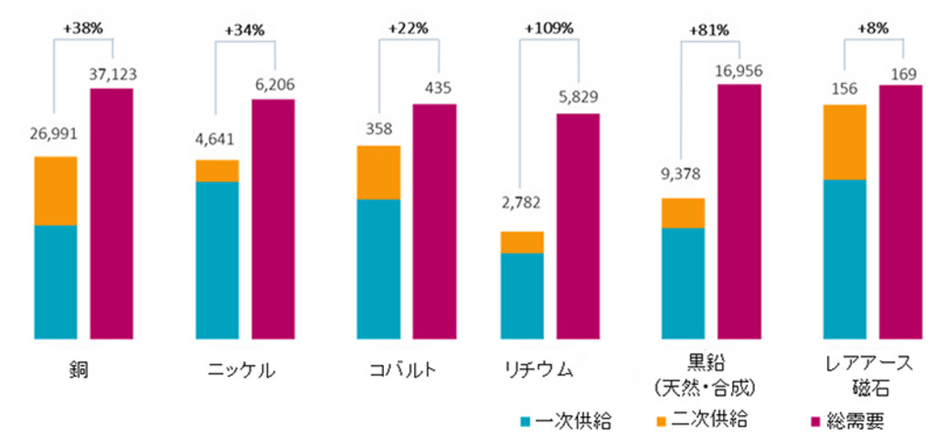 図表 1 – 多くのクリティカルミネラルの需要が2035年までに供給を上回る見通し