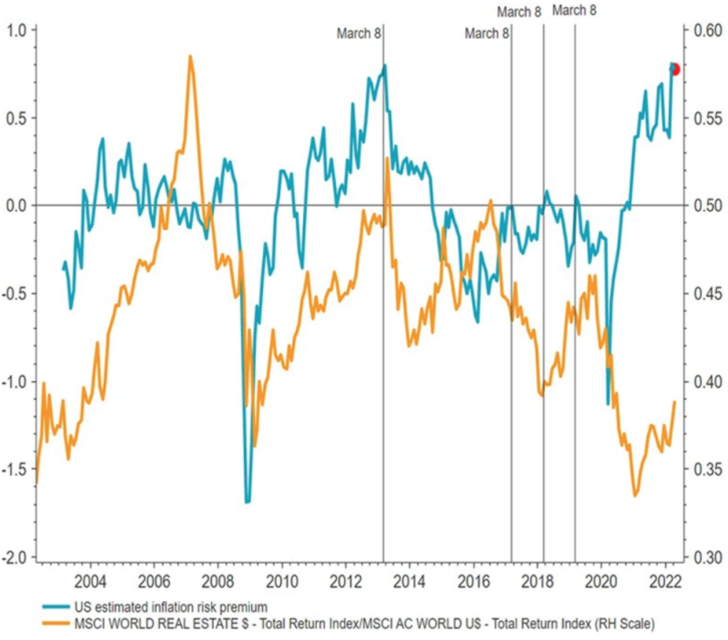 De recente performance van REIT's blijft achter bij de premie die de obligatiemarkten vragen voor het hogere inflatierisico.
