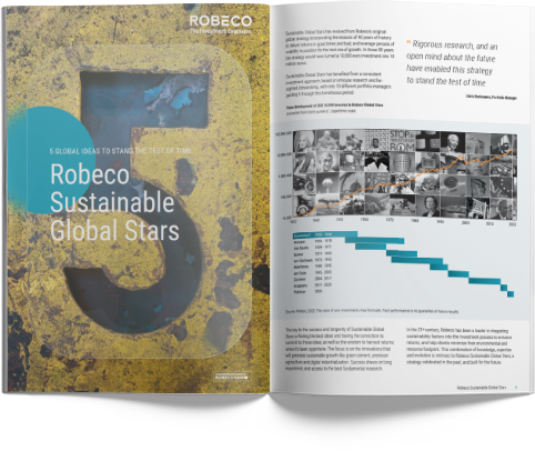 De focus ligt op de innovaties die zorgen voor duurzame groei, zoals groen cement, precisielandbouw en digitale industrialisatie. Het succes van de strategie is te danken aan jarenlange ervaring en toegang tot het beste fundamentele onderzoek. Deze combinatie van kennis, expertise en evolutie zit ingebakken in Robeco Sustainable Global Stars, een strategie die is geroemd in het verleden en gebouwd voor de toekomst.