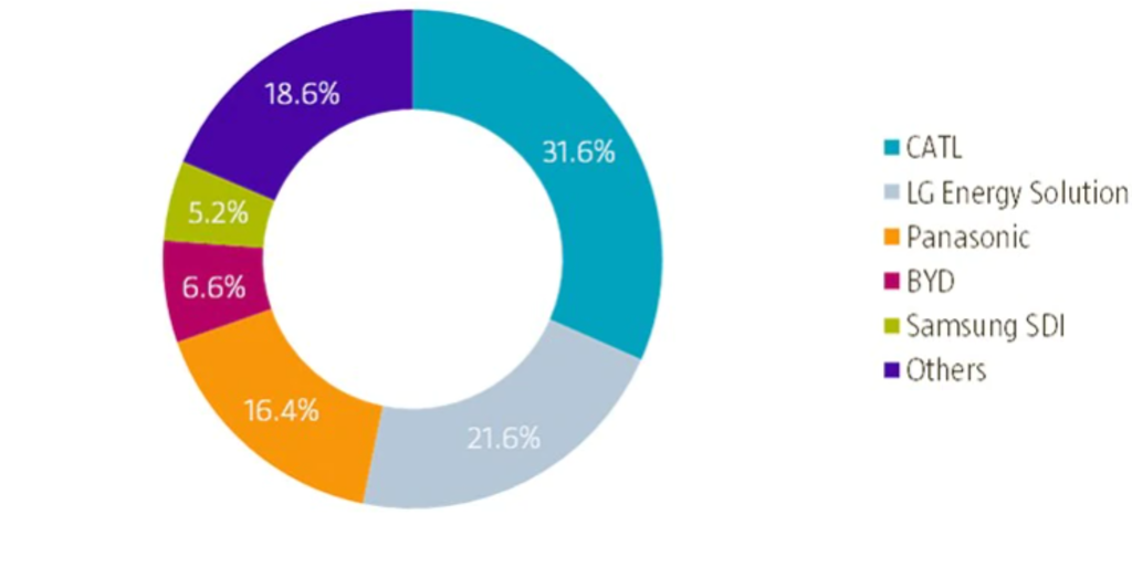 Figuur 3: Marktaandeel van de vijf grootste accufabrikanten