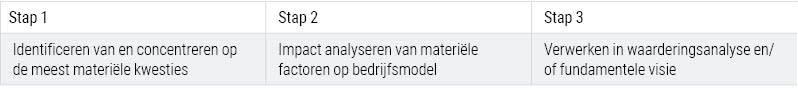 Bij duurzaam beleggen worden progressieve ESG-praktijken toegepast die de waarde kunnen verhogen. Daarnaast wordt het concept van dubbele materialiteit gehanteerd. Beleggers moeten niet alleen kijken naar de invloed van duurzame ontwikkeling op de bedrijfsmodellen van bedrijven en dus hun financiële waarde, maar ook naar het effect dat het bedrijf (of het land) heeft op de wereld.