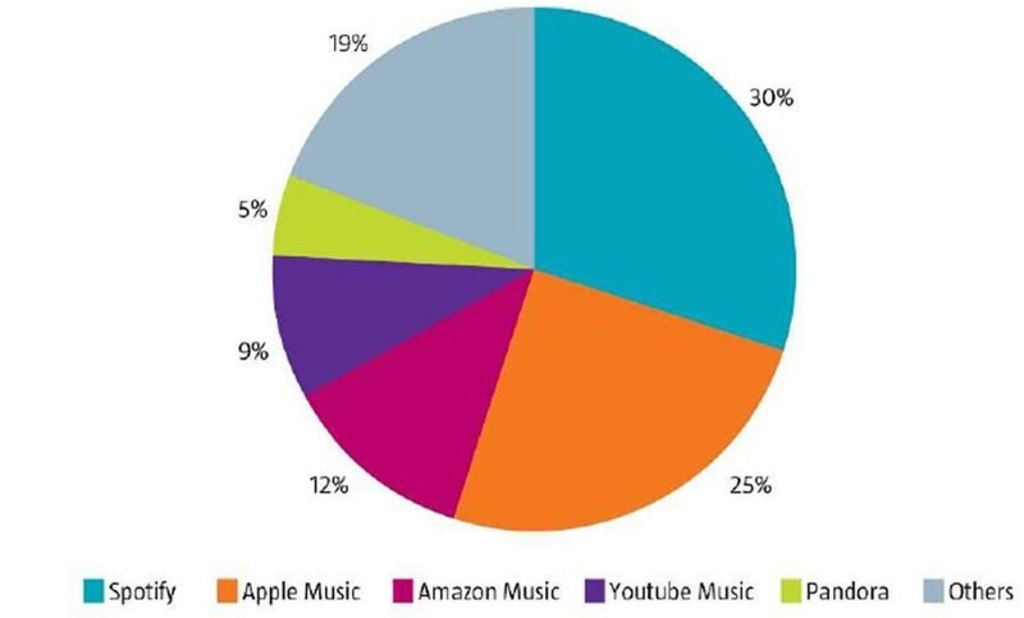 图3:2020年一季度全球音乐流媒体收入占比