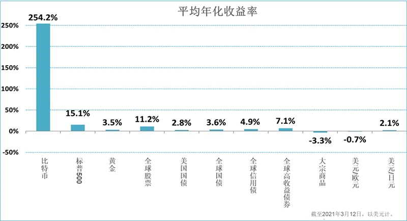 比特币确实为那些敢于持有它的人带来了回报。自2010年7月比特币在交易所首次交易以来,比特币的平均年回报率高达254%,而表现第二的标普500的年回报率仅为15%。