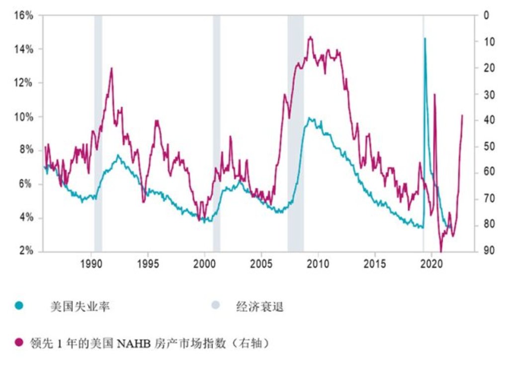 虽然收益率曲线倒挂表明市场相信央行能够为通胀降温,但目前美国国债收益率曲线的“深度倒挂”反映了过度紧缩的风险,预示ISM指数或将在2023年跌破45。因此,对于美国2023年实际GDP增速达到0.8%的普遍市场预期而言,风险倾向于下行。