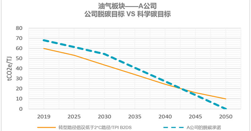 图1|某油气公司减排目标与科学碳目标的对比