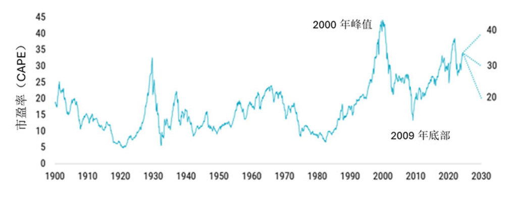 图1——美国股市CAPE:1900年--2030年