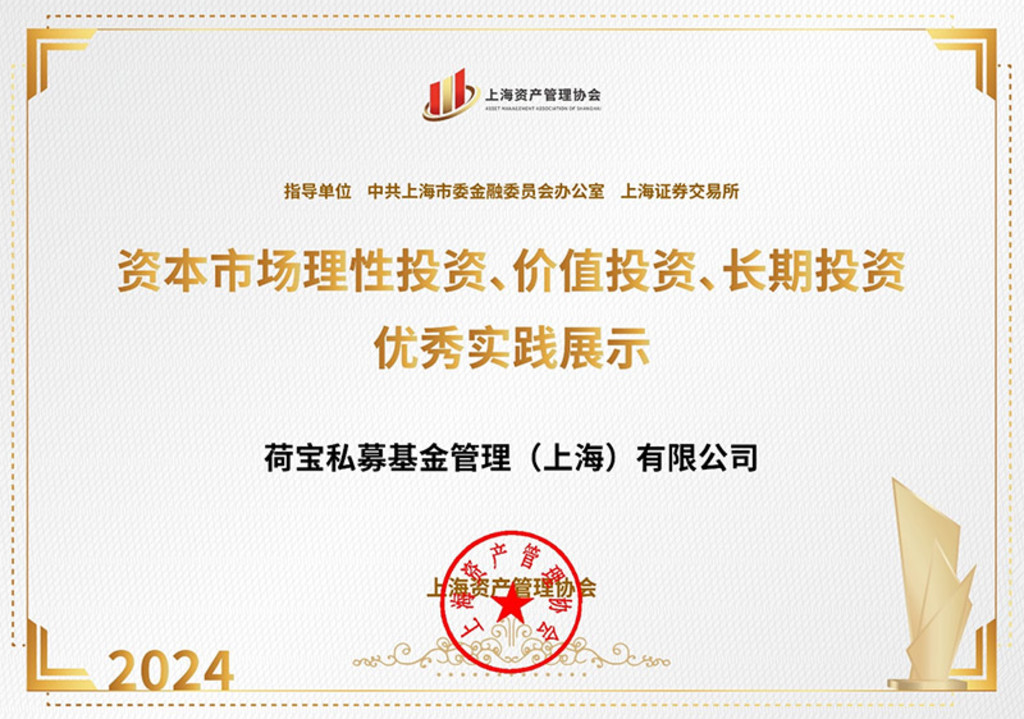 10月11日,上海资产管理协会(下称“协会”)于上海证券交易所举办资产管理业高质量发展暨促进资本市场高质量发展座谈会——倡议“理性投资、价值投资、长期投资”(简称“三投资”)。荷宝投资凭借其对“三投资”理念的优秀实践,入选协会于10月10日在“2024上海全球资产管理论坛”上发布的2024年展示名单,是六家上榜外资机构之一。