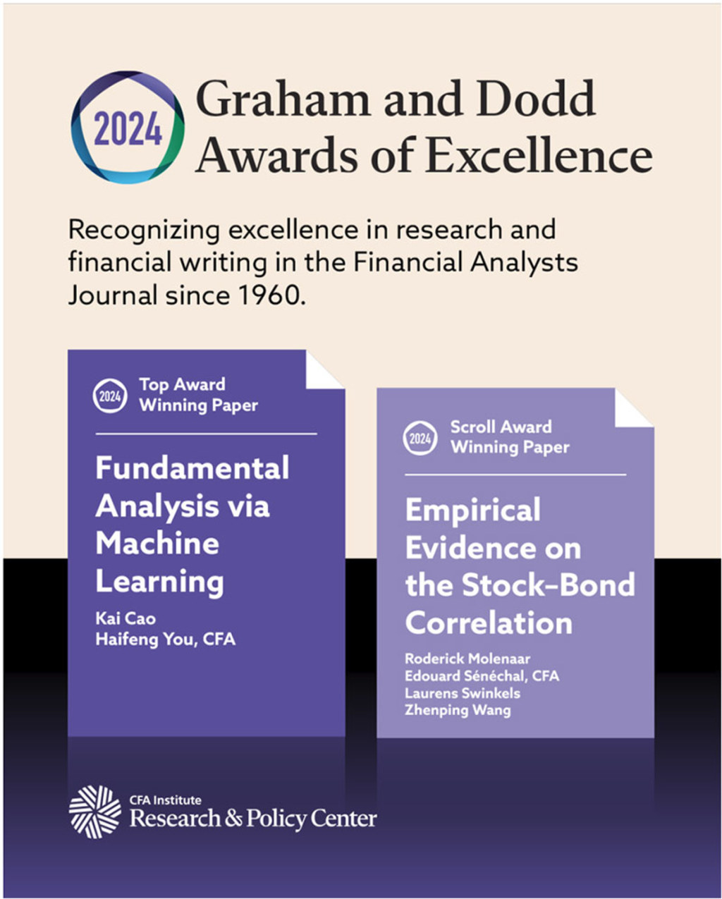 日前,CFA协会政策研究中心(CFA Institute Research and Policy Center)在金融分析师期刊(Financial Analysts Journal)颁发2024年Graham and Dodd大奖获奖信息。由荷宝多资产投资专家Laurens Swinkels 及Roderick Molenaar等,携威斯康星州投资委员会(SWIB)研究员Edouard Senechal和 Zhenping Wang合著的研究论文“Empirical Evidence on the Stock–Bond Correlation”,凭借其对投资理论与实践的杰出贡献,荣获2024年Graham and Dodd Scroll 大奖。