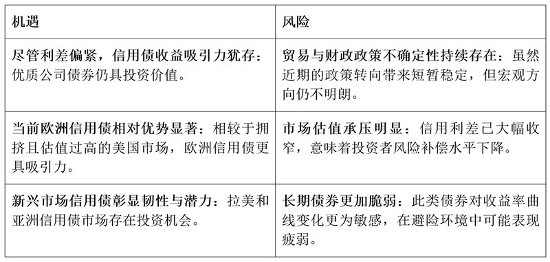 - 估值偏窄,市场容错空间有限:当前信用利差已接近历史低位,虽然基本面依然稳固,但风险不容忽视。