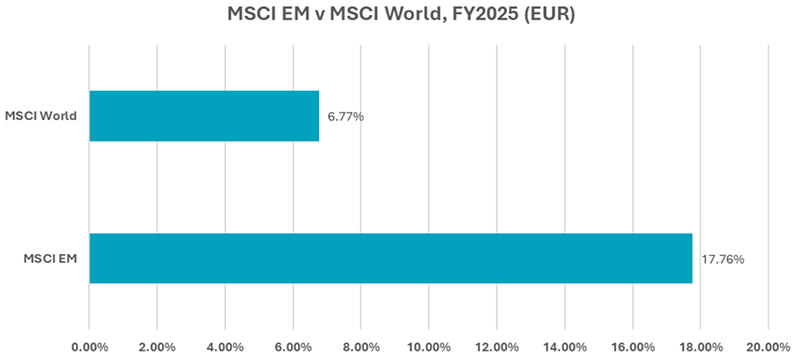 2025年,新兴市场股票以显著优势跑赢美国市场,终结了过去十年“美股独大”的局面。这一轮强势表现得益于相对强劲的经济数据、稳健的企业盈利增长,以及美元的大幅走弱。